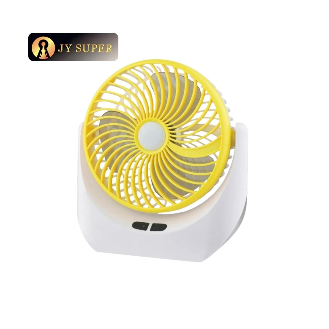 The JY Super JY-1880 Rechargeable Mini Table Fan is a smart 2-in-1 solution combining powerful airflow with a built-in LED lamp. Designed for portability, it features a 6-inch fan with three adjustable speeds and a dimmable LED light for versatile use at home, office, or travel. Its 2400mAh rechargeable battery ensures long-lasting performance, while USB charging adds convenience. Crafted from durable ABS plastic, this compact fan is perfect for load-shedding, study desks, or outdoor use. Enjoy efficient cooling and lighting in one sleek device.