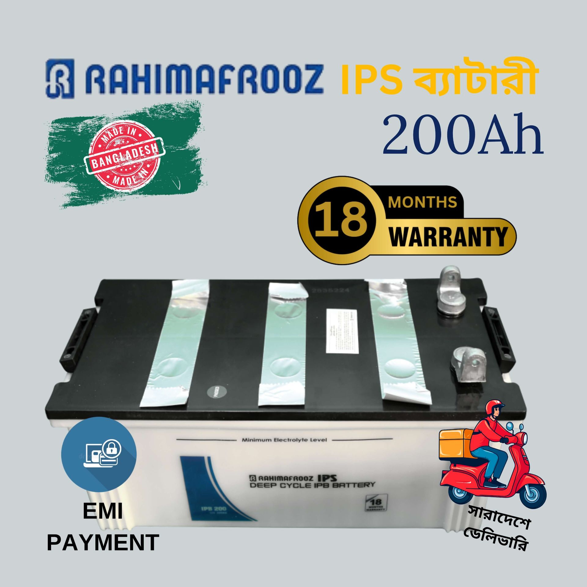 The Rahimafrooz IPB 200 IPS Battery is designed for reliable and uninterrupted power backup in Bangladeshi households and businesses. Built with advanced lead-acid technology, this durable battery offers long service life, fast recharge capability, and consistent performance during frequent power outages. Trusted by thousands, it's ideal for use with home IPS and inverter systems.